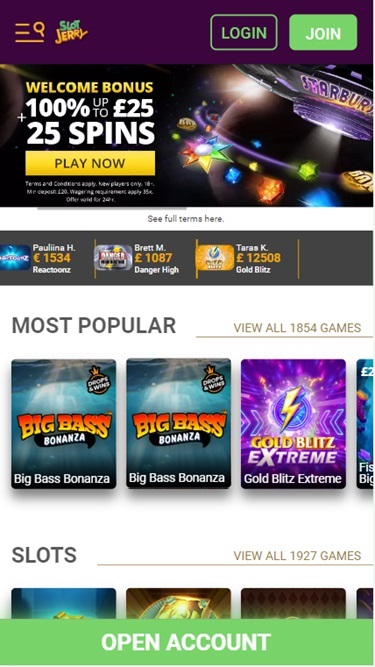 Кроме того, игроки могут получить доступ ко всем играм и функциям через свои мобильные устройства . Веб-сайт полностью оптимизирован для устройств Android и iOS, и это не влияет на качество. Вам не нужно скачивать какие-либо отдельные приложения, чтобы начать играть. Все, что вам нужно, это мобильный браузер и учетная запись в казино Slotjerry.