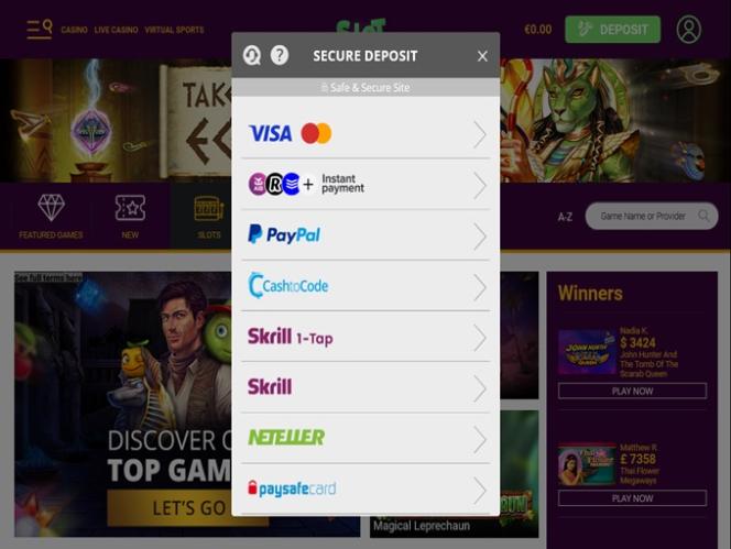 Казино Slotjerry предлагает игрокам несколько популярных способов оплаты, таких как Visa , Mastercard , Neteller , Skrill , Payz и Astropay . К сожалению, на данный момент на этой игровой платформе нет возможности использовать криптовалюты в качестве платежного средства.