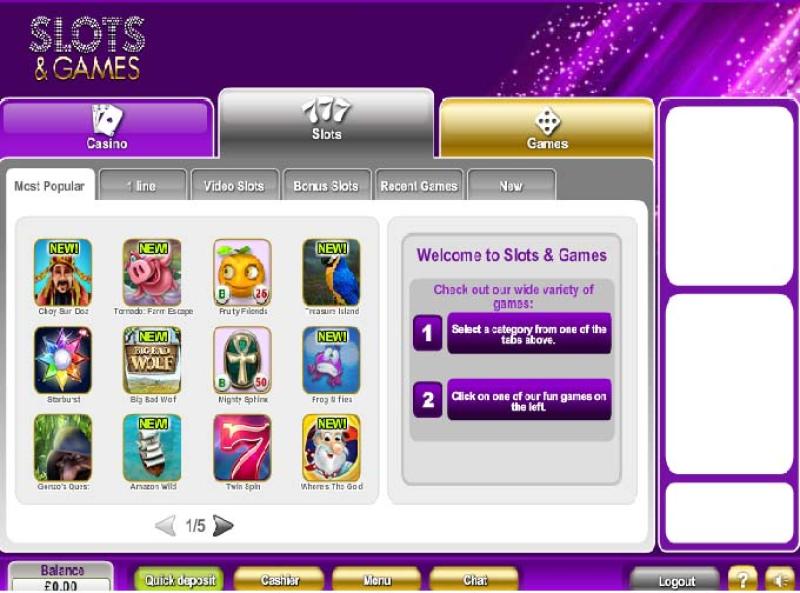 В казино Slots & Games представлен большой выбор видео- и классических слотов, включая игры от таких известных компаний, как Net Ent и Amaya. Казино также предлагает прогрессивные джекпоты, которые могут мгновенно сделать вас миллионером.