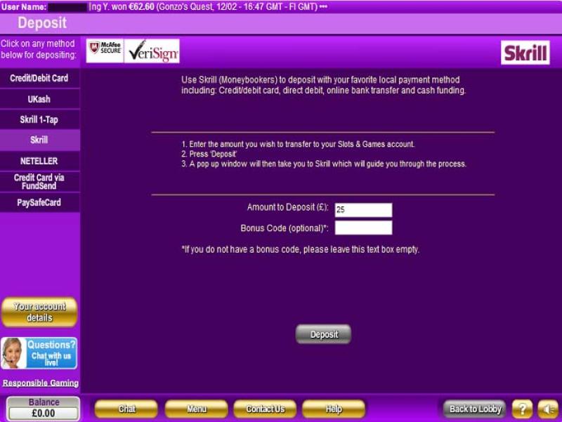 Варианты банковских операций в Slots & Games