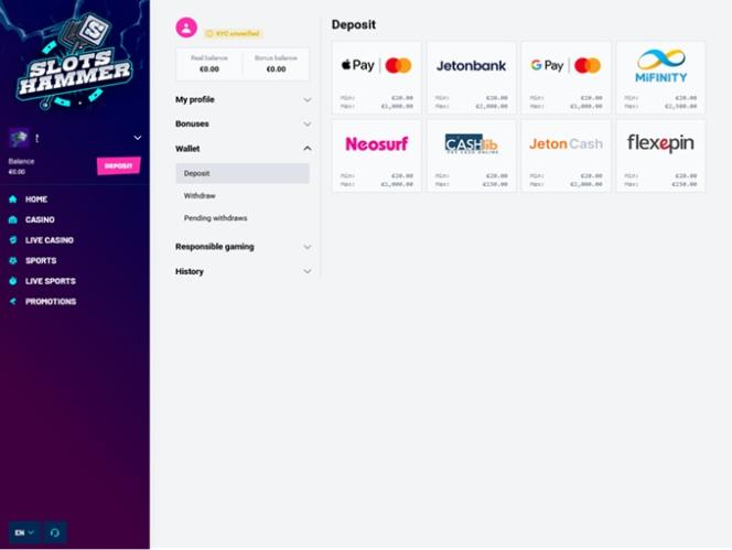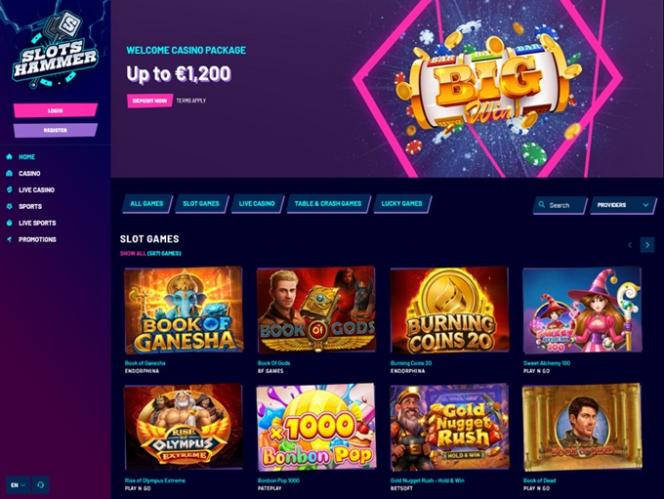 Запущенное в 2025 году, Slots Hammer — это многофункциональное онлайн-казино и сайт для ставок на спорт, цель которого — создать огромную игровую среду для игроков, наполненную тысячами игр казино, включая слоты на реальные деньги, мгновенные игры, настольные игры и игры с живыми дилерами, одновременно расширяя свой раздел ставок на спорт и программу акций с бонусами и наградами.