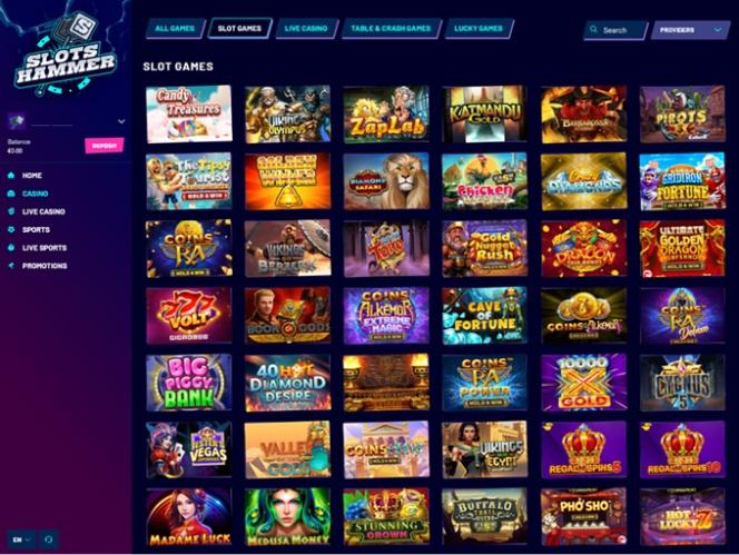 Естественно, это относится и к Slots Hammer. Здесь игроки получат доступ к широкому выбору игр казино и программного обеспечения от различных поставщиков. Платформа работает на базе более чем 60 уникальных игровых студий, большинство из которых признаны одними из лучших на рынке.