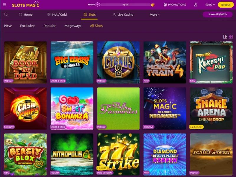 Слоты составляют значительную часть библиотеки казино Slots Magic, и здесь вы найдете как классические, так и видеослоты. Казино предлагает крупный прогрессивный джекпот, но, учитывая низкие лимиты на вывод средств, вам придется довольно долго ждать получения выигрыша.