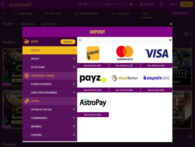 Казино Slots Magic не начисляет бонусные баллы своим клиентам.