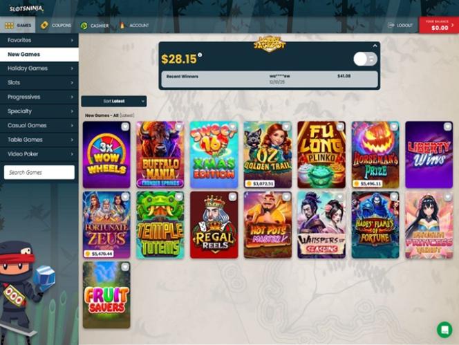 В самом начале мы хотели бы отметить, что Slots Ninja — это далеко не онлайн-казино, ориентированное исключительно на слоты. Посетители этого игрового сайта смогут ознакомиться с несколькими привлекательными категориями, включая: Новые игры, Прогрессивные джекпоты, Слоты, Специальные игры, Настольные игры и Видеопокер. На момент написания этого обзора отсутствовала только категория с живыми дилерами .