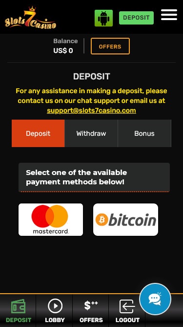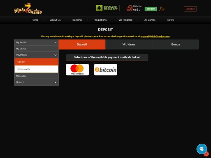Варианты банковских операций в Slots 7 Casino