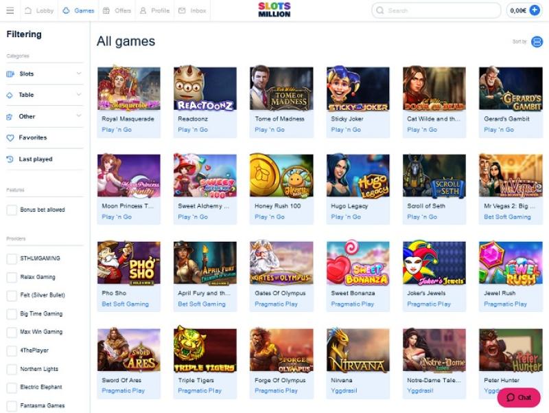 В SlotsMillion представлен только выбор игровых автоматов, в библиотеке казино можно найти игры от ведущих мировых разработчиков. Ассортимент включает как классические 3-барабанные слоты, так и современные видеослоты, в том числе такие брендовые игры, как Jurassic Park, Batman, The Invisible Man, Scarface, Game of Thrones и многие другие.
