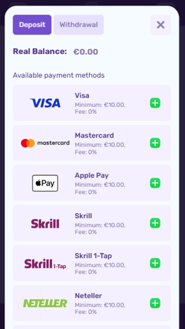 Интерфейс казино оптимизирован для мультиплатформенного использования и идеально подходит для всех настольных и мобильных устройств. Он яркий благодаря световому режиму оформления, но при этом очень выразительный, поскольку в его дизайне используются красочные 3D-фигуры в сочетании с фиолетово-золотой цветовой гаммой.