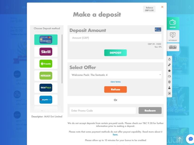 Банковская система Slotty Vegas просто великолепна: депозиты и снятие средств обрабатываются через Visa, MasterCard, WebMoney, Skrill, Neteller, JCB, Maestro и банковский перевод. Депозиты также принимаются через SOFORT, Moneta.ru, Paysafecard, ClickandBuy и PugglePay. Время ожидания вывода средств составляет всего 4 часа, а выплаты на электронные кошельки обрабатываются мгновенно после этого. Переводы на карты и банковские переводы занимают на несколько дней больше, но всё равно очень быстрые. Существует ежемесячный лимит на вывод средств в размере 25 000 евро, хотя неизвестно, распространяется ли он на прогрессивные джекпоты.