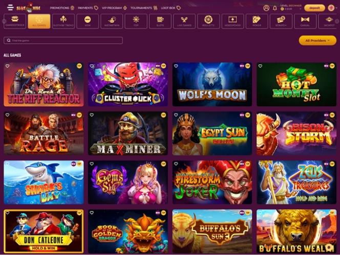 Казино SlotVibe, предлагающее игры от множества разработчиков, — это место, где каждый игрок найдет что-то подходящее для себя. Yggdrasil, Playtech, Endorphina , Nolimit City, iSoftBet — это лишь некоторые из брендов, чьи лучшие игры входят в библиотеку оператора.