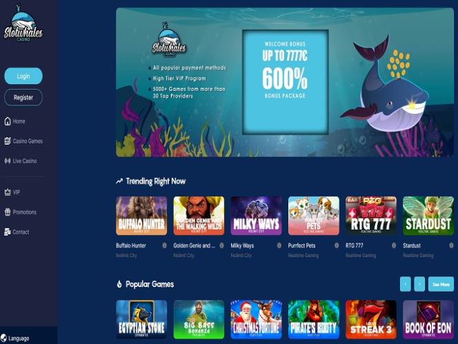 Поскольку Slotwhales существует всего пару месяцев, мы должны отдать им должное за то, что они успешно предоставляют игрокам доступ к играм от более чем 90 разработчиков программного обеспечения. В этом списке есть такие известные имена и гиганты индустрии, как Relax Gaming, NetEnt , Yggdrasil Gaming , Pragmatic Play , Quickspin , Evolution Gaming , Microgaming и другие.