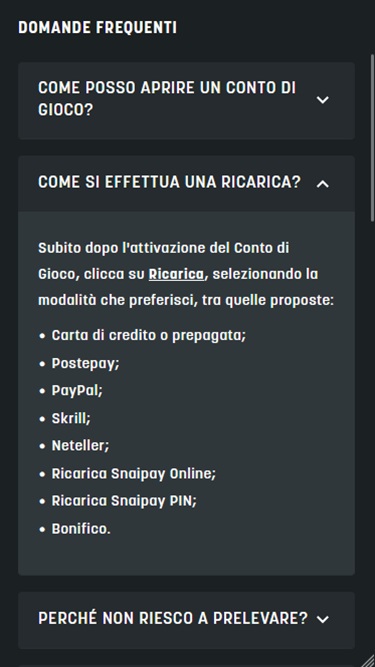 SNAI имеет долгую историю предоставления услуг по ставкам итальянцам. Компания начинала как букмекерская контора, но с тех пор расширила свой ассортимент, предлагая своим клиентам лотереи, бинго и игры в казино. SNAI, официально зарегистрированная в стране, является одним из лучших вариантов в Италии. Она предлагает быстрые выплаты, хорошие показатели RTP и ежедневные бонусы за вращения для игроков. Если вы находитесь в Италии, SNAI — это место, где вам обязательно стоит поиграть.