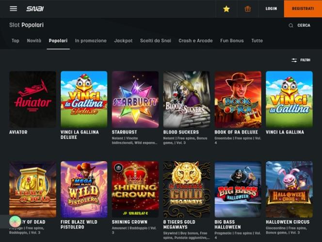 SNAI работает на программном обеспечении Microgaming, Net Entertainment, Playtech, BetSoft, 1x2gaming, Barcrest, Big Time Gaming, ELK Studios, Espresso Games, Evolution Gaming, Habanero Systems, iSoftBet, lightningboxgames, Novomatic, Oryx, Play'n GO, playson, Quickspin, Rabcat, Relax Gaming, Thunderkick, WM, Yggdrasil, Endorphina, GameArt, Booming Games, Pragmatic Play, Nolimit City, Red Tiger Gaming, IGT, Fantasma Games, SYNOT Games, Skywind, Spinmatic, Triple Edge Studios, Fazi, Stormcraft Studios, Pocket Games Soft, All41 Studios, Gluck Games, Gameburger Studios, Neon Valley Studios, Shuffle Master, SpinPlay Games, SmartSoft Gaming, Eurasian Gaming, Games Global, Amusnet Interactive, Ash Gaming, Bally Technologies, Blueprint Gaming, Greentube, Leander Games, Merkur Gaming, NextGen, WMS, Inspired Gaming, Gaming Realms, SG Interactive, Gamomat, Red7Mobile, Scientific Games, Reel Time Gaming, Capecod Gaming, Foxium, Betdigital, Just For The Win, PearFiction Studios, Wild Streak Gaming, Fortune Factory Studios, RubyPlay, 4ThePlayer, AvatarUX, Gamevy, ReelPlay, Rarestone Gaming, Snowborn Games, Lucksome Gaming, Area Vegas, RAW iGaming, Spribe, Nailed It! Games, Reel Kingdom, Nazionale Elettronica and Light & Wonder , а игры казино доступны на веб-платформе мгновенной игры, которая загружается непосредственно через ваш интернет-браузер. Это избавляет от необходимости загружать громоздкое программное обеспечение на ваш компьютер. Сайт также поддерживает мобильные игры, позволяя играть со смартфонов и планшетов.