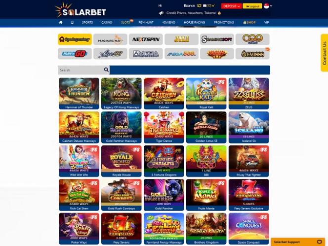 В онлайн-казино Solarbet представлен огромный выбор слотов . Среди самых популярных игр — Gates of Olympus, Sweet Bonanza, Hammer of Thunder, Monkey Jump, Donki Kong, The Dog House Megaways и Caishen . Конечно, есть и множество других игр про одноруких бандитов.