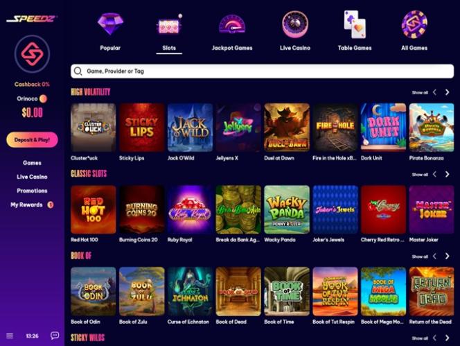 В казино Speedz игроки могут насладиться потрясающим выбором игр от более чем 90 разработчиков программного обеспечения. Каталог включает десятки категорий и жанров для каждого типа игр, поэтому каждый игрок сможет найти именно то, что ищет. Это означает, что вы можете открывать для себя новые игры каждый раз, когда заходите на сайт, и всегда иметь возможность вернуться к своим любимым.