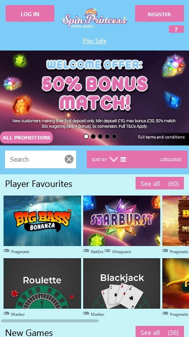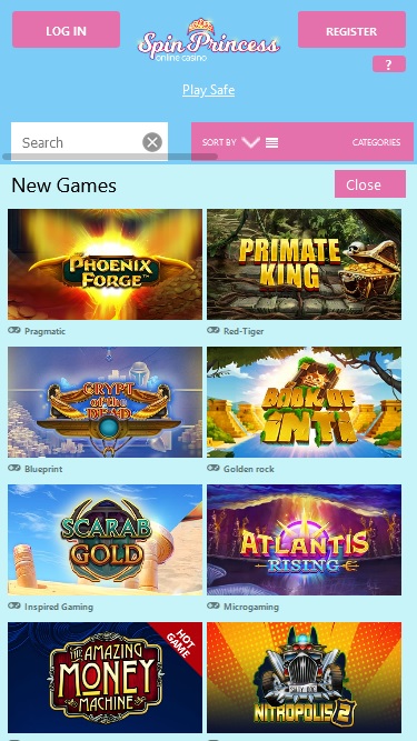 В казино Spin Princess представлено небольшое количество игровых автоматов, поскольку казино предлагает выбор видеослотов, разработанных компаниями Nektan и NextGen Gaming.