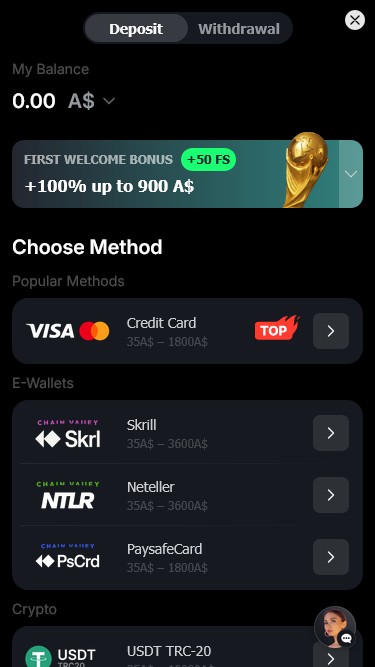 💰 Мин. депозитAU$35