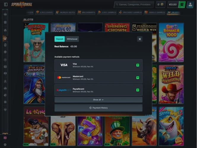 Основанное в 2025 году, Spinational Casino — это многофункциональное онлайн-казино, предлагающее игрокам огромное количество игр и вариантов ставок на спорт. В казино принимают игроков из Германии, Австрии , Швейцарии, Ирландии, Канады , Португалии и Эстонии, которые могут играть в тысячи слотов на реальные деньги, игры с живыми дилерами, игры в Crash Games и настольные игры, а также пользоваться многочисленными акциями и бонусами.