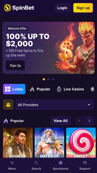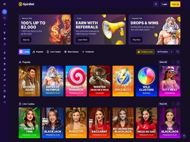 Здесь также представлен краткий список популярных игр, а также краткое, но подробное описание того, что SpinBet может предложить своим клиентам. Как и в любом другом регулируемом онлайн-казино, ключевые страницы сайта, такие как условия использования, центр поддержки, часто задаваемые вопросы, политика конфиденциальности и правила ответственной игры, расположены внизу главной страницы .