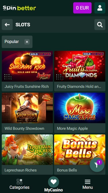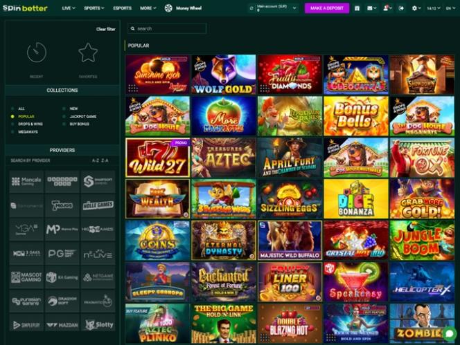 SpinBetter — это потрясающий бренд для онлайн-казино с таким сильным разделом игровых автоматов. Игроки могут попробовать классические видеослоты , но коллекция постоянно обновляется новейшими хитами. Вся библиотека слотов организована по подкатегориям, таким как: