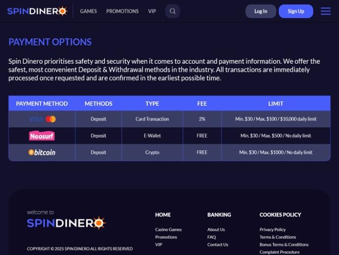 Учитывая количество представленных поставщиков программного обеспечения, команда Spindinero Casino проделала отличную работу, предложив игрокам относительно разнообразный выбор игр. Действительно, есть значительные возможности для улучшения, и мы надеемся увидеть, как бренд представит игры с живыми дилерами.