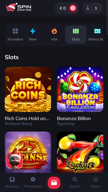 Сайт локализован на английский, датский, немецкий, французский и итальянский языки. Он адаптивный и идеально оптимизирован для игр на ходу на портативных устройствах с любым размером экрана. Если вы предпочитаете настольные компьютеры, вас также ждет отличный опыт. Мы вот-вот перейдем к обзору услуг казино, так что следите за обновлениями, ведь SpinEmpire подготовил для своих участников потрясающие рекламные предложения, турниры, программу лояльности и многое другое.