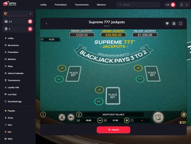 Более подробная информация о SpinEmpire Casino's Playtech Blackjack