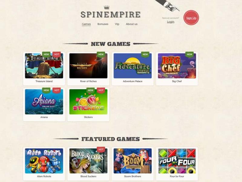 В казино SpinEmpire большое внимание уделяется игровым автоматам: здесь представлены сотни видеослотов, а также некоторые старые классические игры. Кроме того, казино предлагает выбор прогрессивных джекпотов от BetSoft Gaming, которые позволяют выиграть крупные денежные призы.