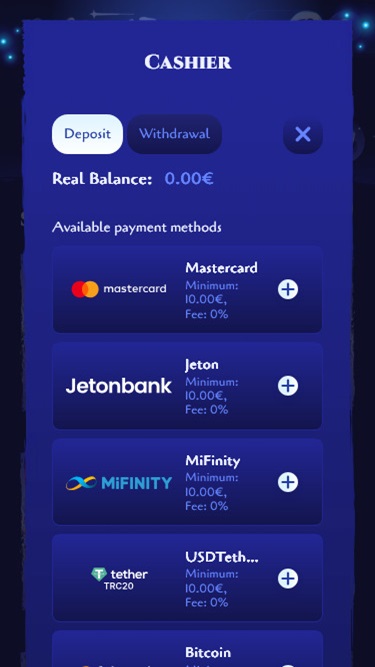 Сайт имеет привлекательный дизайн и отличный функционал, а также очень прост в навигации . После быстрой регистрации игроки получат доступ к удобной панели управления и кассе, где будут отображаться все доступные способы оплаты, как криптовалютой, так и традиционными способами.