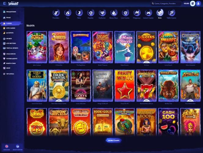 Как мы уже упоминали, выбор партнеров и подбор подходящего контента — непростая задача для операторов, особенно когда речь идет о формировании раздела онлайн-слотов. Ответственность перед участниками казино становится еще выше, когда ваш бренд — Spinight. Однако в этом плане можно не беспокоиться — это казино предлагает отличную коллекцию онлайн-слотов , насчитывающую более шести тысяч наименований на момент нашего визита.