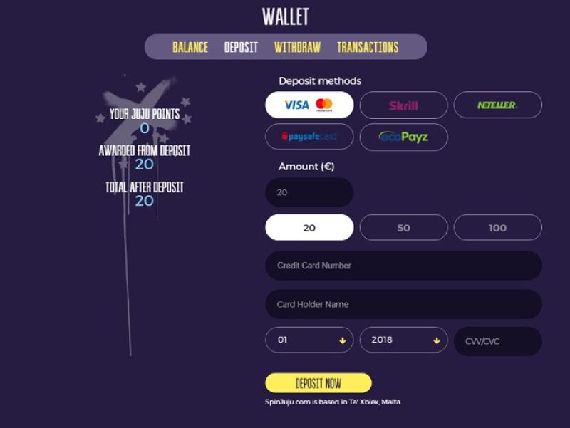 Spin JuJu — это онлайн-букмекерская контора, основанная в 2016 году компанией MT SecureTrade Limited, работающей на Мальте. Казино работает исключительно на мобильных устройствах, то есть для игры вам потребуется мобильный телефон или планшет, и оно ориентировано на регулируемый игровой рынок. Казино предлагает широкий выбор игр от ведущих разработчиков, хорошие бонусы и приемлемые сроки выплат, что делает Spin JuJu отличным мобильным сайтом для ставок.