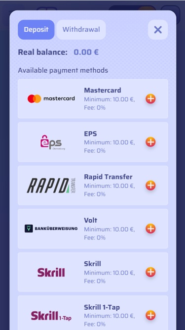 Оператор позволяет игрокам использовать платформу на английском, чешском, немецком, норвежском, испанском, венгерском, польском, итальянском, португальском и французском языках . В сочетании с тем фактом, что игрокам на мобильных устройствах достаточно просто зайти на сайт через браузер своего смартфона, чтобы насладиться всеми играми, это делает онлайн-казино очень оптимизированным и доступным.