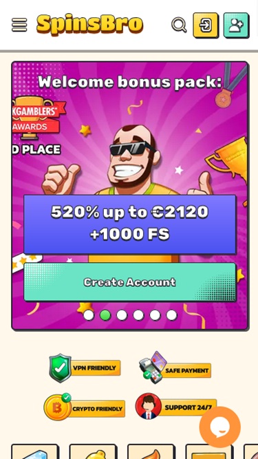 Что касается внешнего вида сайта, SpinsBro выглядит эстетично. У него нет стандартного оформления, характерного для многих онлайн-казино. Вместо этого он выглядит мультяшным и невероятно забавным.