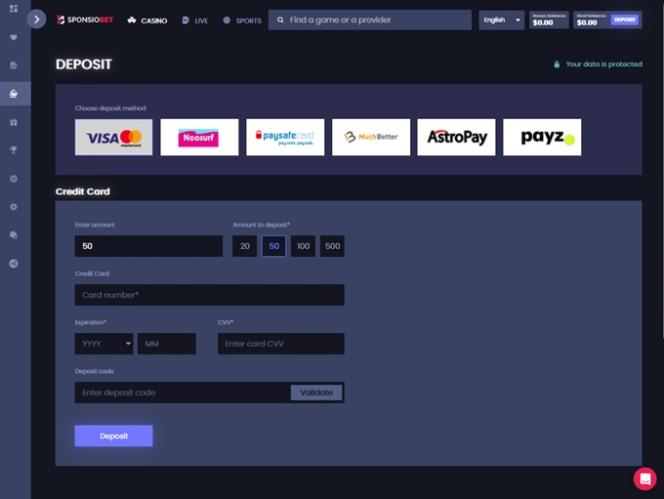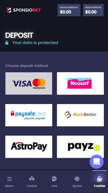 Что касается способов пополнения и вывода средств, игроки могут выбирать из множества платежных систем, таких как Visa , Mastercard , Neteller , Paypal , Paysafecard , Skrill и Payz . К сожалению, на данный момент у игроков нет возможности использовать криптовалюты в качестве способа оплаты.