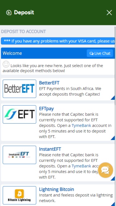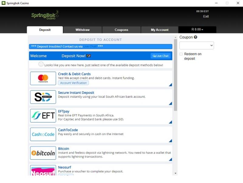 Изучив условия участия в соревнованиях сборной ЮАР по регби, я не нашел ничего, что можно было бы назвать несправедливым или хищническим по отношению к игрокам. Банковская система в Springbok Casino достаточно хороша: казино обрабатывает платежи и депозиты через Visa, Skrill, Neteller и ecoPayz. Пополнение счета также доступно через Mastercard, а вывод средств осуществляется банковским переводом. Лимит на вывод средств составляет 25 000 рандов, а выплаты обрабатываются в течение 4-6 рабочих дней.
