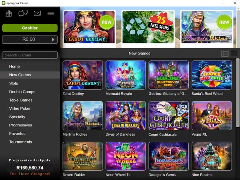 В казино Springbok представлено немало слотов, как видеоигр, так и классических. Игры почти исключительно уникальные, но игроки также смогут покататься на барабанах нового слота Three Stooges. Доступны несколько прогрессивных джекпотов, которые могут принести крупные денежные призы. Некоторые игры поддерживают мобильную игру, позволяя играть со смартфона или планшета.