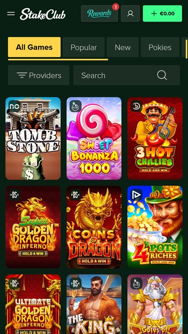 Как мы уже упоминали ранее, StakeClub сотрудничает с длинным списком авторитетных разработчиков программного обеспечения, таких как Microgaming, Net Entertainment, Real Time Gaming, BetSoft, 1x2gaming, Big Time Gaming, Evolution Gaming, Ezugi, Habanero Systems, Novomatic, Play'n GO, playson, Quickspin, Relax Gaming, Thunderkick, Endorphina, Wazdan, Pragmatic Play, Nolimit City, Red Tiger Gaming, Booongo, Felix Gaming, Red Rake Gaming, Skillzzgaming, Belatra Games, Fantasma Games, FUGA Gaming, Platipus Gaming, Triple Edge Studios, BGAMING, Northern Lights Gaming, Evoplay, Stormcraft Studios, Switch Studios, OneTouch, Electric Elephant Games, Pocket Games Soft, Triple PG, All41 Studios, CQ9 Gaming, Mascot Gaming, Gameburger Studios, Pulse 8 Studios, Neon Valley Studios, SpinPlay Games, Mancala Gaming, Real Dealer Studios, Buck Stakes Entertainment, Caleta Gaming, Games Global, Reevo, Blueprint Gaming, Greentube, Push Gaming, Tom Horn Gaming, Wager Gaming, Iron Dog Studio, Foxium, Storm Gaming Technology, PearFiction Studios, Wild Streak Gaming, Slingshot Studios, Fortune Factory Studios, 4ThePlayer, AvatarUX, Crazy Tooth Studio, ReelPlay, Alchemy Gaming, Snowborn Games, Hacksaw Gaming, Max Win Gaming, Gold Coin Studios, Gamzix, Slotmill, Dragon Gaming, Peter And Sons, Eurostar Studios, Aurum Signature Studios, Onlyplay, Dragoon Soft, Area Vegas, Winfinity, 3 Oaks Gaming, Wishbone Games, Spribe, Jili, Circular Arrow, HammerTime Games, Four Leaf Gaming, Nailed It! Games, Neko Games, Reel Kingdom, Oros Gaming, Popiplay, Light & Wonder, Live88, Playzia, VoltEnt, Kitsune Studios and Turbo Games .