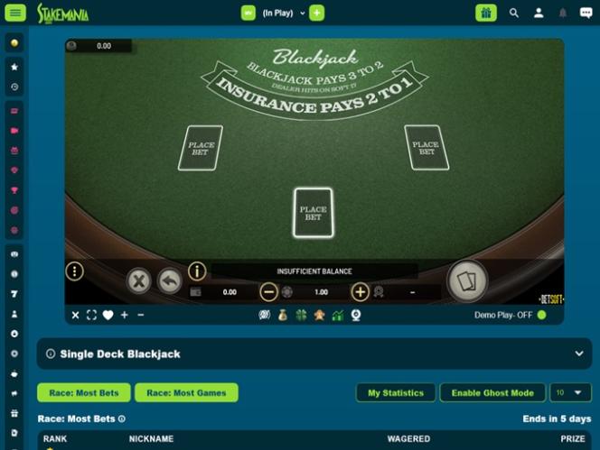 Более подробная информация о StakeMania's Net Entertainment Blackjack
