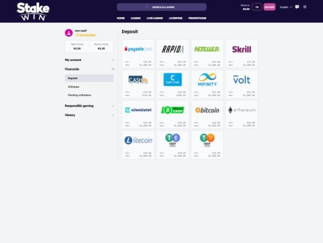 Касса казино StakeWin поддерживает популярные цифровые валюты и криптовалюты , а также множество широко используемых традиционных банковских методов, включая дебетовые и кредитные карты, банковские переводы, электронные кошельки, а также другие платежные системы.