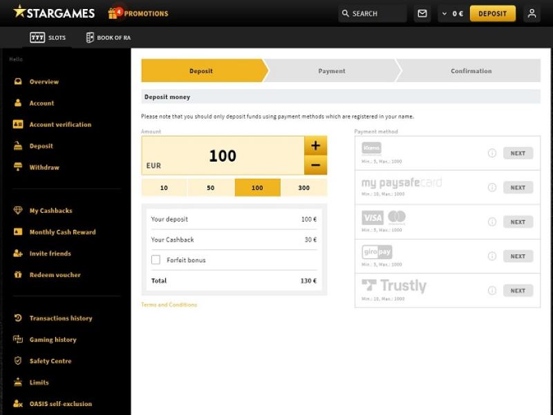 Прочитав условия и положения казино Star Games, я не нашел ничего, что бы показалось мне несправедливым или хищническим по отношению к игрокам. Банковская система в Star Games Casino превосходна: казино принимает платежи через American Express, банковские переводы, Click2Pay, iDeal, Maestro, MasterCard, Skrill, Neteller, PayPal, Paysafecard, Visa, SOFORT Banking, GiroPay и другие. Выигрыши на электронные кошельки выплачиваются мгновенно, в то время как обработка платежей по кредитным и дебетовым картам может занять до 24 часов. Банковские переводы могут занять от двух до пяти рабочих дней. Следует отметить, что в этом казино установлен лимит на вывод средств в размере 3000 евро в месяц.
