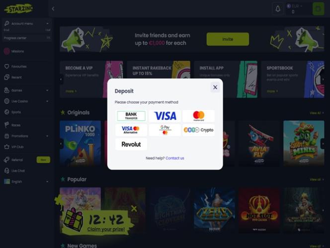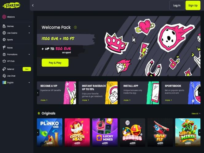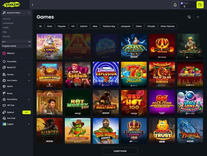 Казино Starzino, несомненно, является сильным игроком на рынке онлайн-гемблинга. Бренд сосредоточился на предоставлении своим игрокам огромного выбора игр казино, включая онлайн-слоты, игры с живыми дилерами, игры с живыми дилерами, настольные игры и ставки на спорт. Кроме того, казино предлагает многочисленные акции, а также принимает криптовалюты, такие как Bitcoin, в качестве допустимого способа оплаты.
