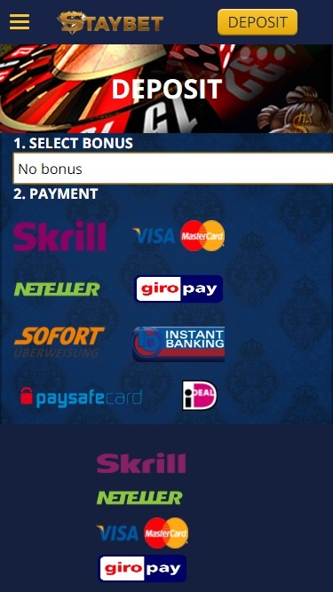 ОБНОВЛЕНИЕ: В 2018 году нам стало известно , что Staybet игнорирует жалобы игроков, не выплачивает выигрыши и меняет условия использования сайта задним числом, когда это выгодно сайту. Такое поведение недопустимо, и мы внесли это казино в черный список. Игрокам настоятельно рекомендуется избегать игры на этом хищническом сайте.