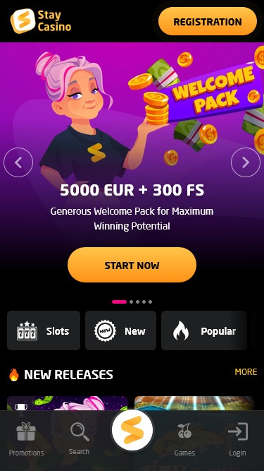 Оформив новую подписку в Stay Casino, вы получите доступ к огромному портфолио iGaming-игр, дополненному бонусными баллами, выгодными предложениями и мгновенными выплатами. За регистрацию вам гарантировано получение одного или двух рекламного бонуса , а турниры и захватывающие события помогут вам дольше оставаться на платформе.