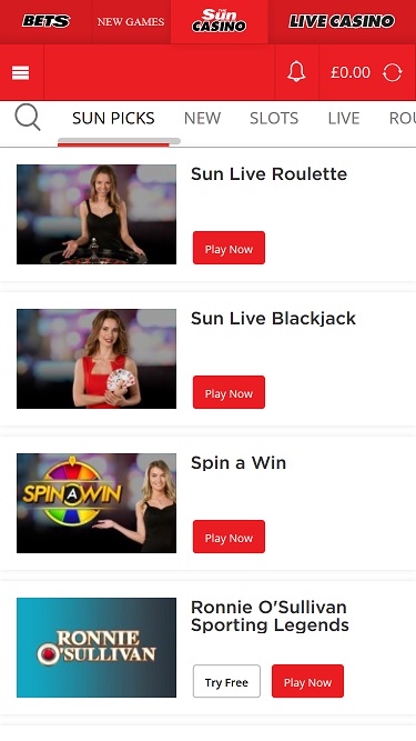 Помимо стандартных игр казино, Sun Bets также предлагает своим клиентам полноценную букмекерскую контору и казино с живыми дилерами, в которое интегрирован ряд настольных игр.