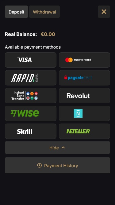 Если вы считаете себя криптоэнтузиастом, вас ждет приятный сюрприз, поскольку казино позволяет как вносить, так и выводить средства в криптовалюте. Bitcoin, Dogecoin и Tether — это лишь некоторые из доступных вам криптовалют.