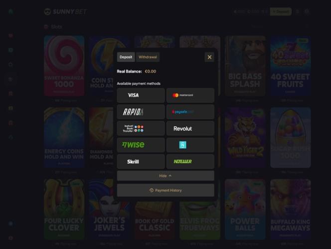 SunnyBet — это онлайн-казино, работающее по лицензии Anjouan и предлагающее своим игрокам обширную библиотеку игр . Независимо от того, считаете ли вы себя поклонником новейших и самых популярных игровых автоматов или изысканных игр с живыми дилерами, вы сможете быстро найти игру по своему вкусу!
