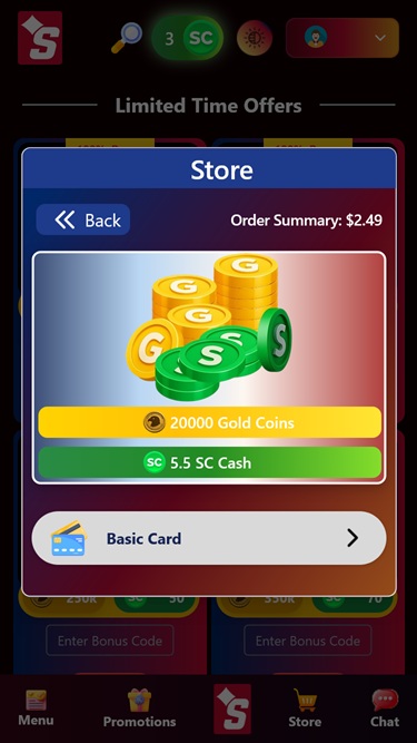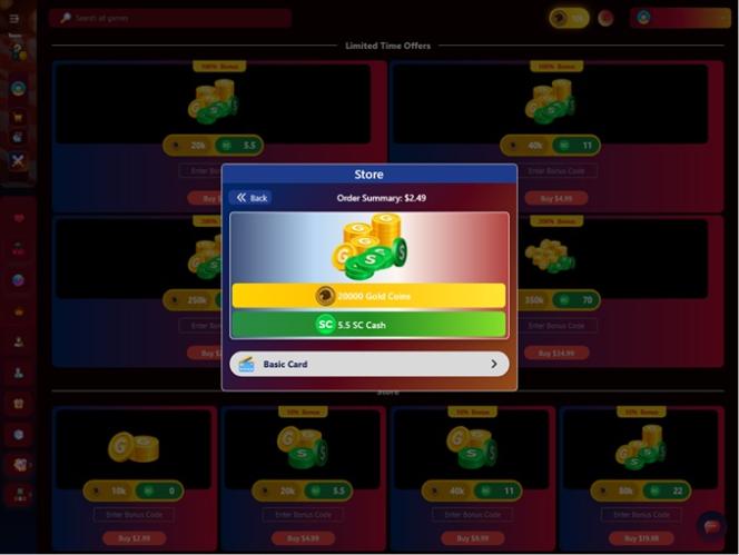 Изначально каждому новому аккаунту будет предложено получить огромный приветственный бонус, включающий бесплатные золотые монеты и монеты Sweeps. После использования первоначального бонуса вы сможете участвовать в различных других акциях и получать бонусы, включая ежедневные награды за вход, розыгрыши в социальных сетях и реферальные вознаграждения.