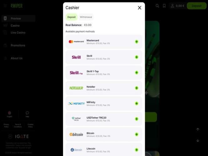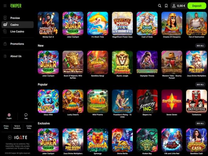 Казино Swiper приветствует игроков из множества стран по всему миру, но есть и регионы с ограниченным доступом, с которыми вы можете ознакомиться на странице условий и положений.