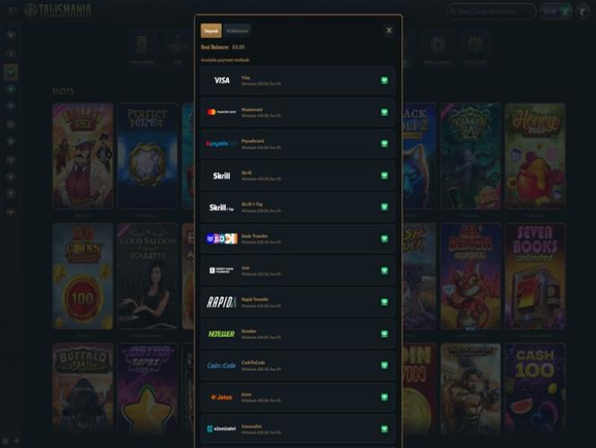 Казино Talismania сотрудничает с большим количеством студий-разработчиков программного обеспечения для казино. В этот обширный список партнеров входят как известные компании в сфере iGaming, заложившие основы онлайн-индустрии азартных игр, так и инновационные разработчики новых игр, стремящиеся привнести свежие идеи в игровой мир. Игроки могут ознакомиться с разнообразными играми, созданными известными поставщиками программного обеспечения, такими как Microgaming, Evolution Gaming, Endorphina, Quickspin и многими другими.