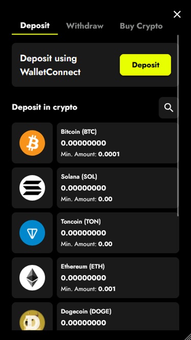 Казино принимает множество криптовалют, а также евро в качестве фиатной валюты.